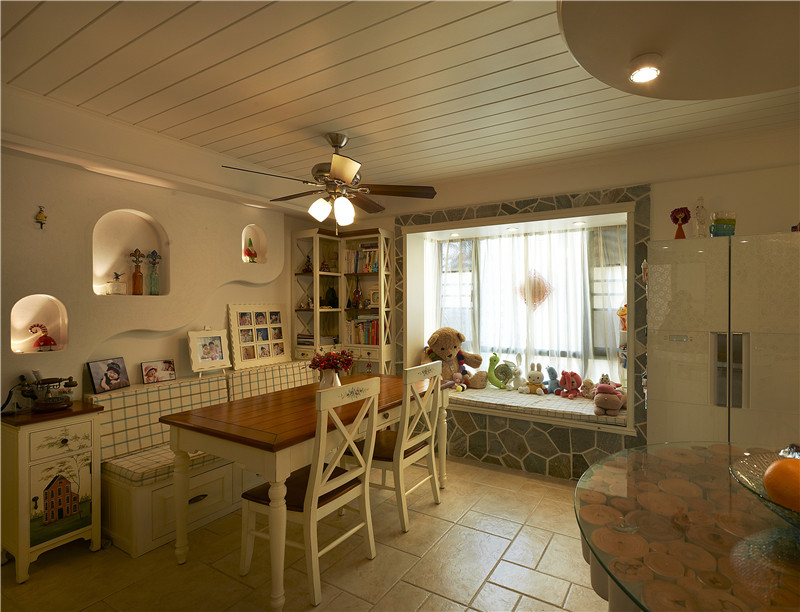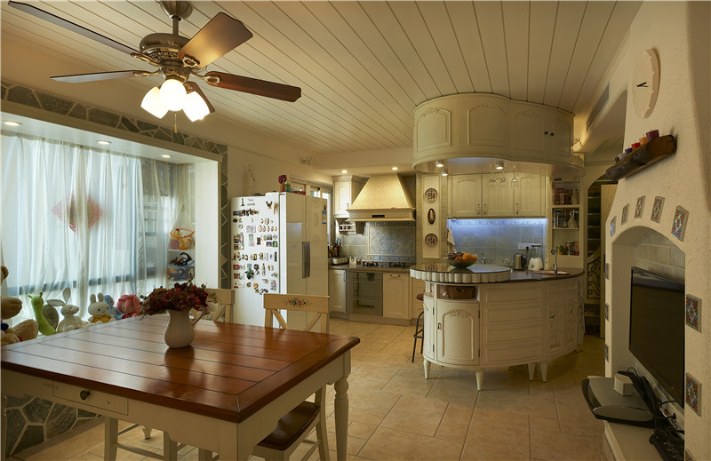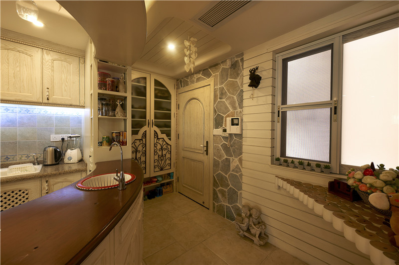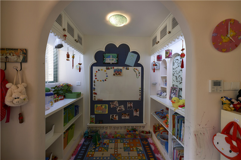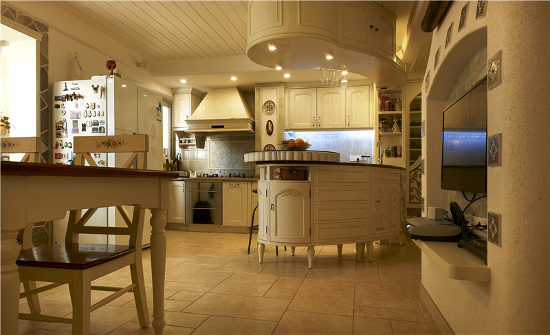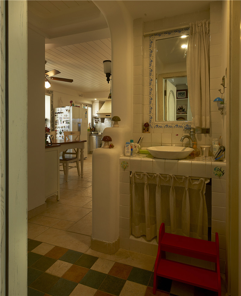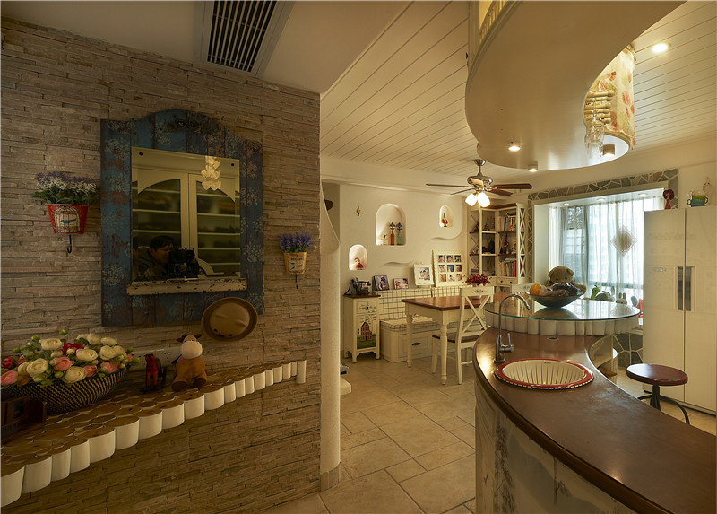 設計概念:本案采用的是以地中海的風格詮釋出主人公優雅舒適的生活態度。將現代與傳統元素結合起來,提煉地中海傳統建筑的精髓,去除表象,直達心里,并充分考慮自然與傳統因素以喚醒人們深藏的場所記憶和文化認同感。整個空間的區隔均由地中海建筑的典型元素拱門來過渡,更由半穿半鑿方式塑造的室內“景中景”做裝點,視覺空間極富穿透力和流動性,在有限的空間里使其最大程度的呈現出自由開闊。在整個裝飾上,到處充滿著和諧溫馨,讓人心情舒暢,簡單質樸的墻面渲染著地中海的情懷,大自然的色彩就是這樣的背景上展開綠植、掛畫、彩色陶土磚、馬賽克拼貼,各就其位,呈紅黃綠的色彩組合,沒有矯揉造作,似乎有點原始,但卻是本色自然。無論是公共空間或是私密區域,都遵循這樣的裝飾手法,裝飾元素不斷呼應和延續整個空間在變化擁有統一的特質,溫情無處不在。
