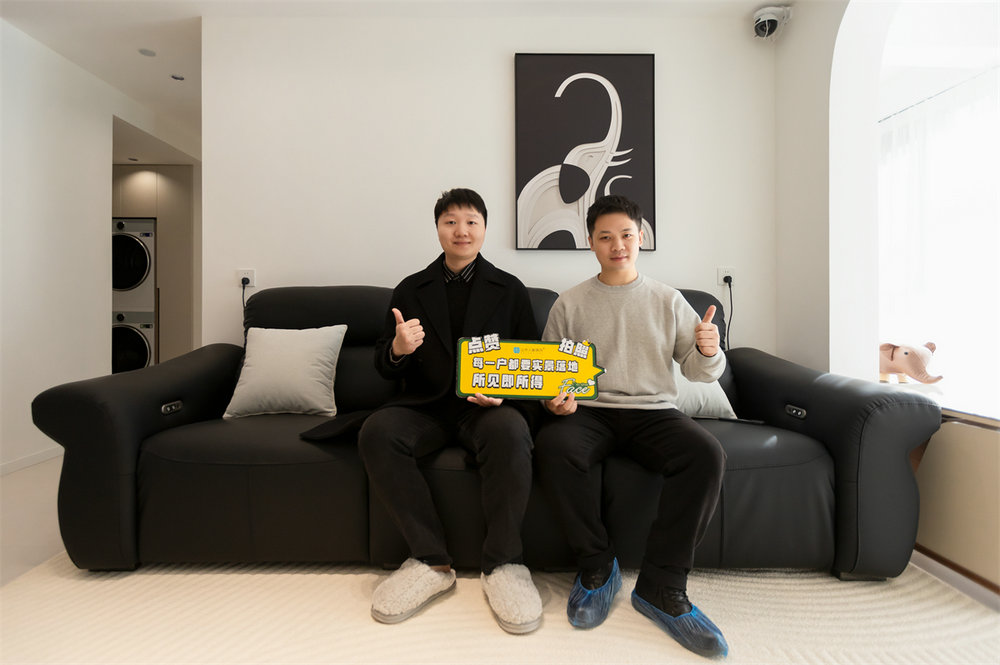 客廳配備有100寸激光投屏電視,5.1影音設備和2只天空背景的音樂喇叭,顯著提升居家生活的品質和舒適度。