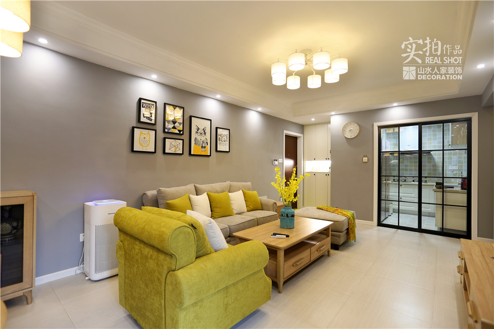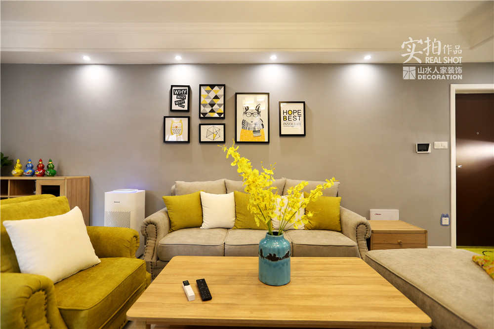 本套案例的業主比較年輕,90后婚房,色彩運用以灰色作為空間的主打色調,為了達到驚鴻一瞥的效果,剎那驚艷的黃色必不可少。溫暖的燈光,安靜的布置,一進門就被溫暖包圍。黃色的明亮、艷麗,搭配灰色的沉穩、冷艷,讓人看一眼就沉淪其中。