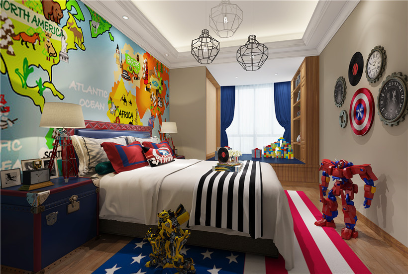 主要材料:諾貝爾磚、長頸鹿地板、定制家具、墻畫、都芳乳膠漆
