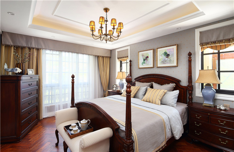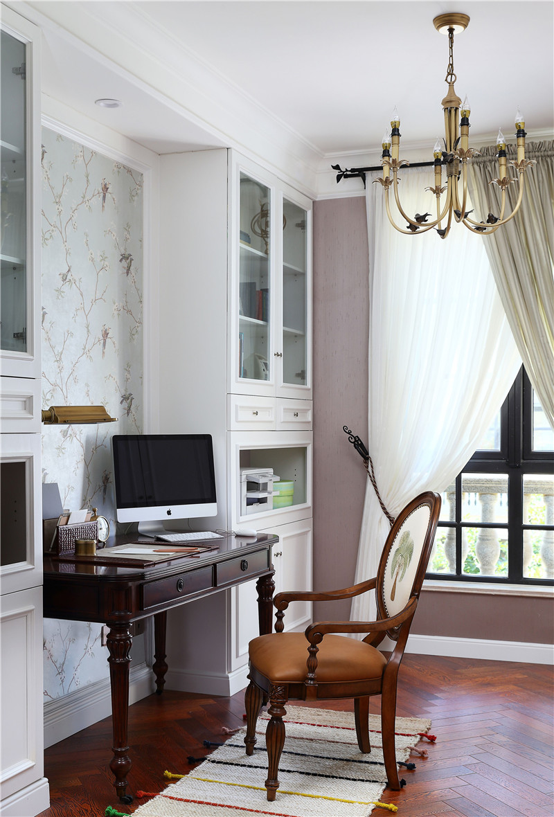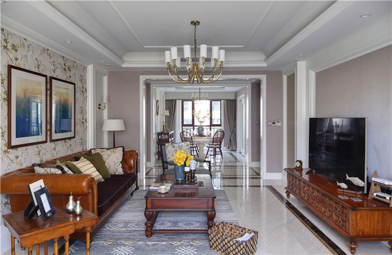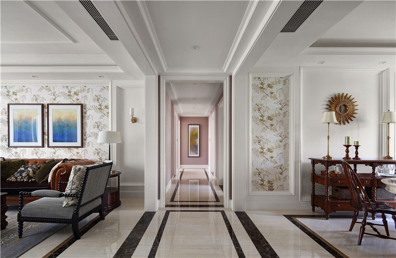本案融合了美式的自然脫俗和法式的精致典雅,通過低純度的色彩,做舊的家具飾品,加上石材、鏡面、金色的點綴,使寧靜而又精致的品位生活得以詮釋。