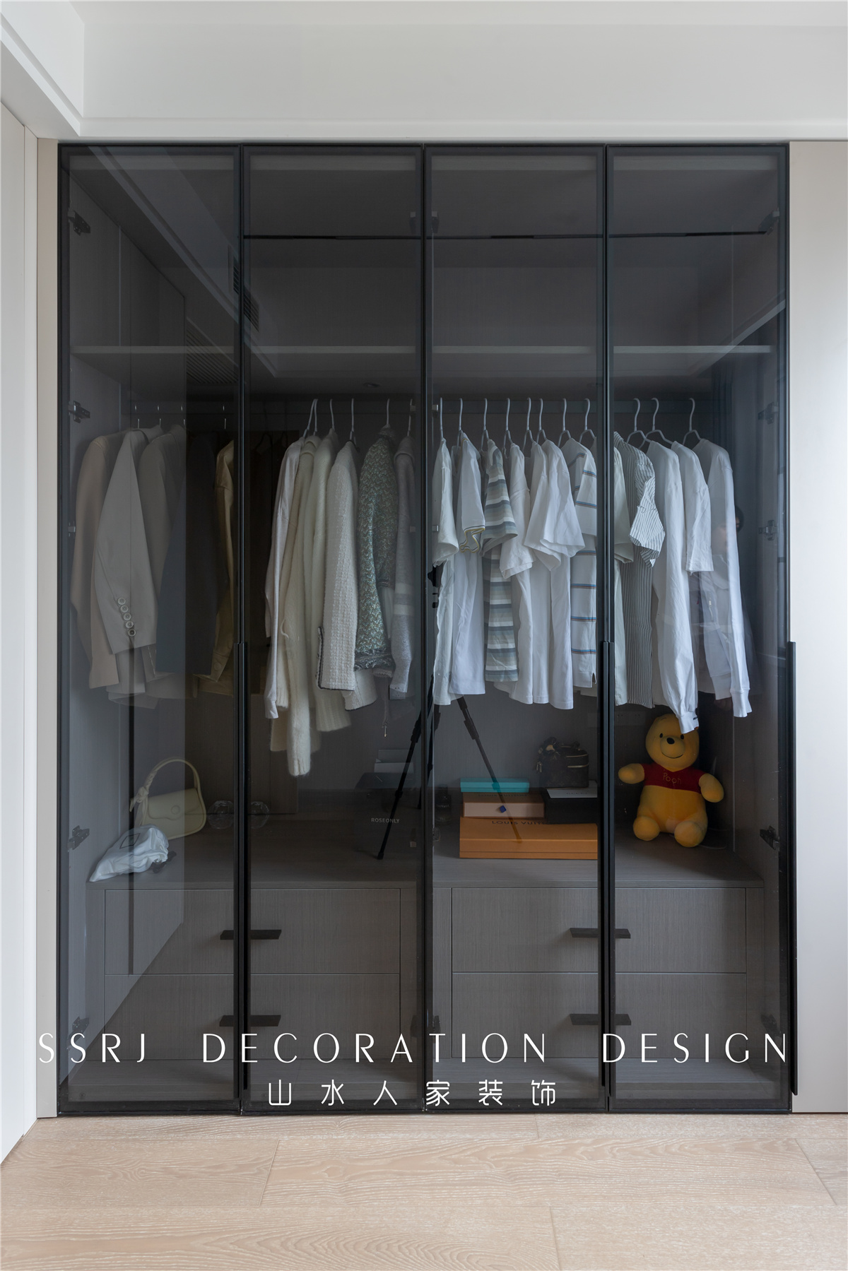 本房原是三居室布局,但業主迫切地想要一個衣帽間。于是騰出一個臥室空間改成衣帽間。除正常儲物外,還可以當做休閑區。實木地板上盡可以隨心所欲,做運動、午休等都是非常適宜的。