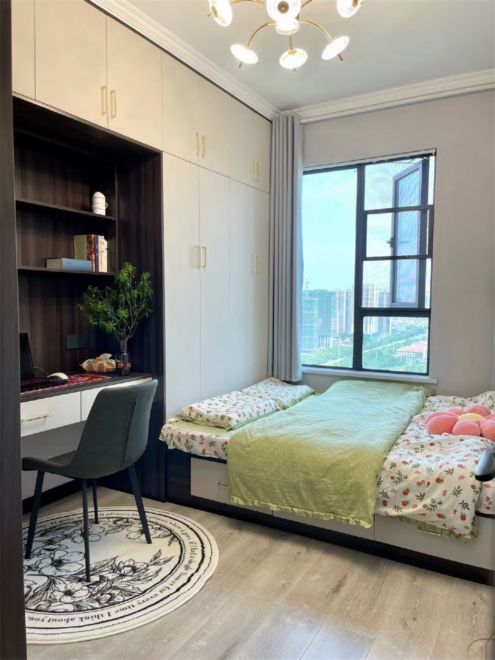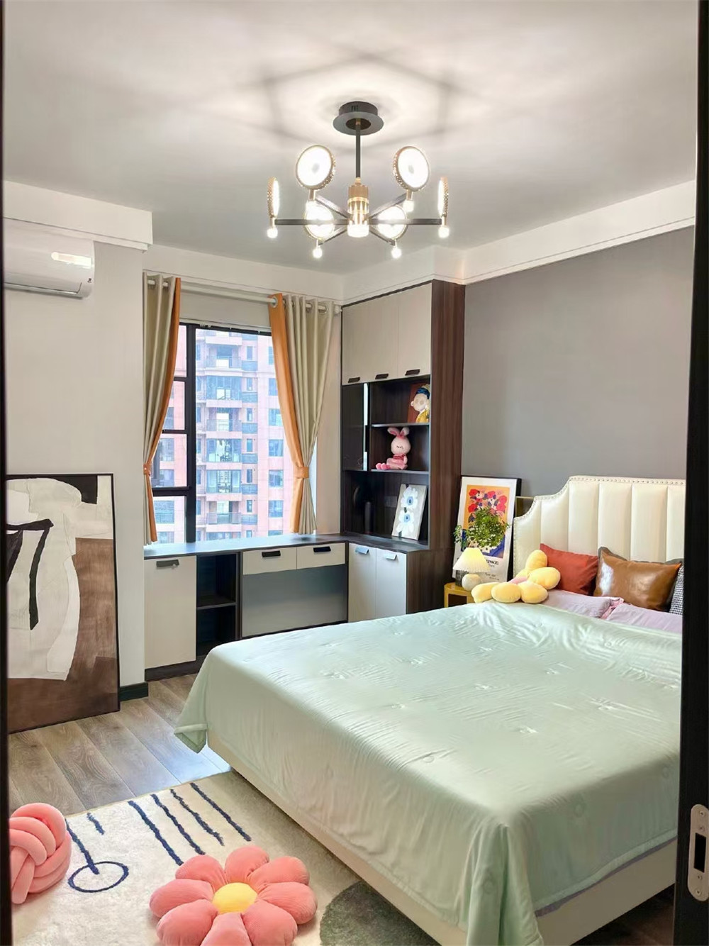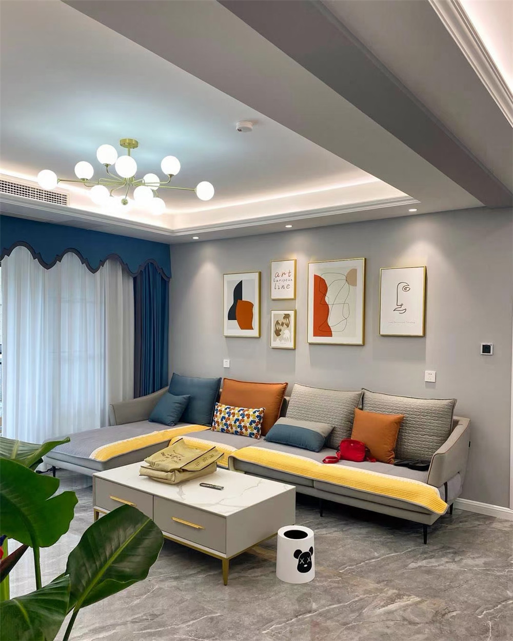 客廳背景墻采用現在比較流行的巖板鋪貼造型,墻面采用的是乳膠漆調色處理。簡約而不簡單,也比較環保。因為家里后期有老人小孩的居住,環保這一塊還是非常重要的。沙發背景就是使用的掛裝飾畫,看起來整體比較協調。臥室這一塊考慮到兒童房的設計,就采用了榻榻米的布置格局。房間簡約溫馨,房間吊頂不考慮中央空調和風管機,所以就采用簡單的石膏板雙眼皮設計,還有石膏線條的設計,前后呼應一種簡約不簡單的低調華麗的裝飾效果。