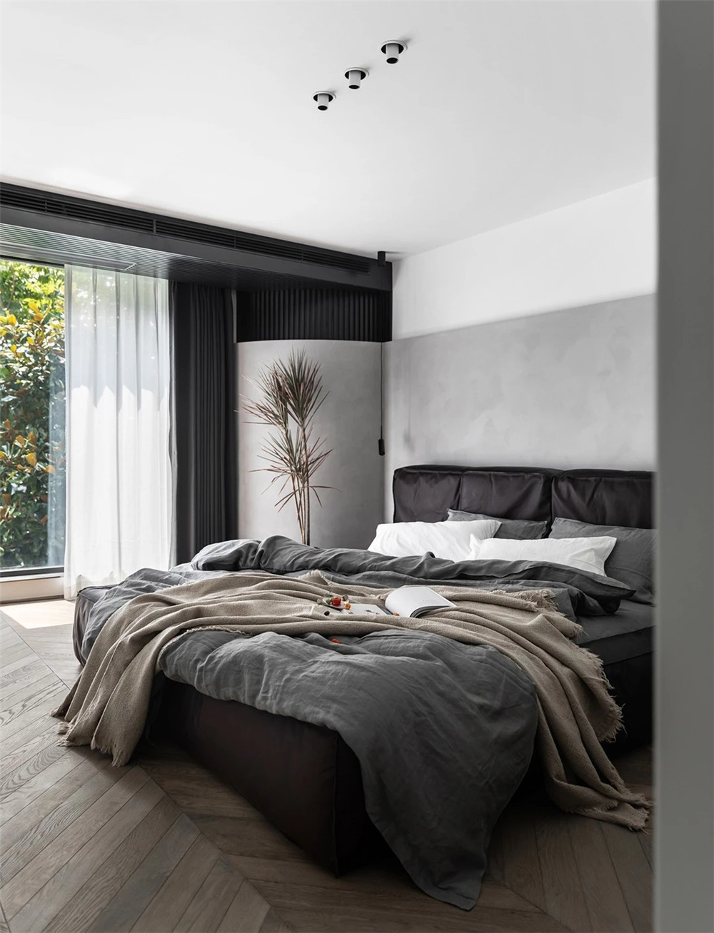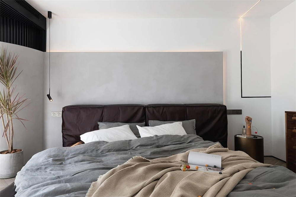 客廳背景墻采用留白設計,客戶后期可能會使用投影儀,所以,一切都是從簡!,沙發背景采用了一面素色柜子,增加了收納功能。簡約而不簡單,也比較環保。因為家里后期有老人小孩的居住,環保這一塊還是非常重要的。沙發背景就是使用的掛裝飾畫,看起來整體比較協調。臥室這也是跟客餐廳相呼應,做了留白的設計,灰色的簡約沙發。房間簡約溫馨,前后呼應一種簡約不簡單的低調華麗的裝飾效果。