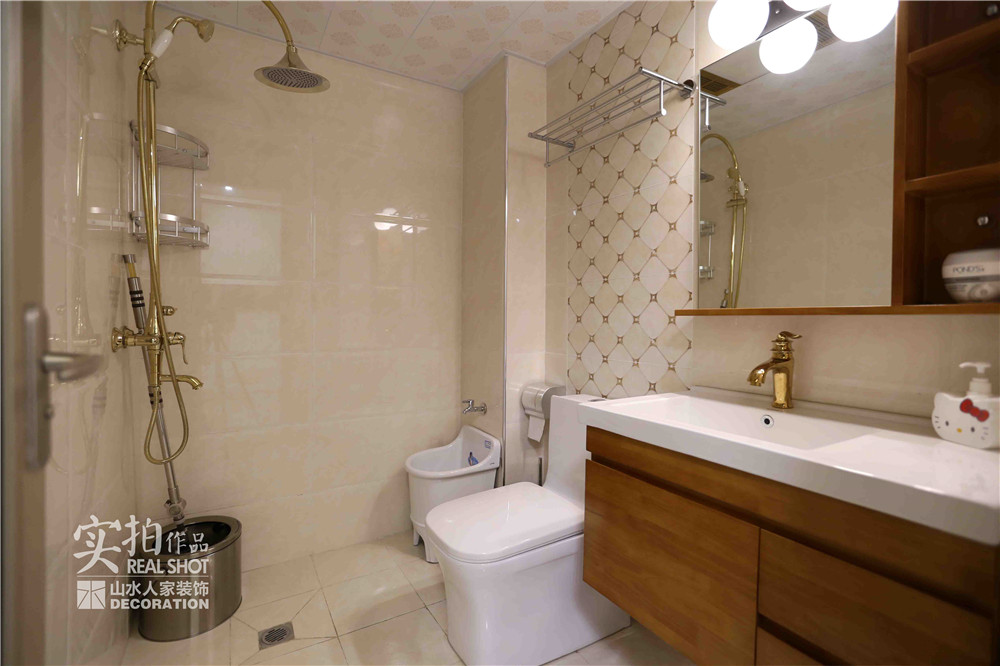 綜合業主想法,設計師本著從功能出發,實用跟美觀并存的理念著手設計。整個戶型尺寸比較寬裕,就是入戶花園及進門衛生間面積有點浪費。結合業主的需求,設計師改造了一個進門衣帽間以及一個衛生間,一來增加儲物,二來讓進出換衣服更方便--順道一提,爹爹覺得這是個很好的點子。