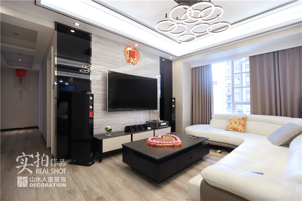 本案在設計上細膩地關懷著居住者的生活方式,借助簡約的手法為業主打造一個休閑宜居的生活空間,把抽象的情感轉化為居住者可以感知的空間形式,在美學的引領下完成人與空間的情感訴求。色彩以黑與白為主,讓居室顯得簡潔、利落而不單調。白色的明快,黑色的沉穩,加之咖色完美地調和了黑白的強烈對比。白色使視覺空間得到了延伸,而黑色又將中心明確,灰色讓剛強中不失柔和,不會覺得沉悶和壓抑。
