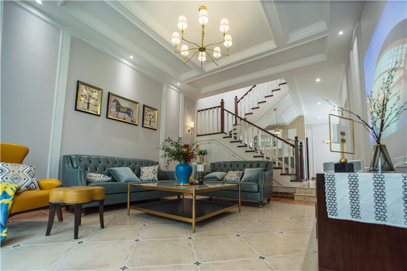 除此之外,還有設計款實木家具(搖搖椅、茶幾等)做搭配,當木質元素和多元色彩碰撞時,給客廳帶來更多活力和新鮮感。