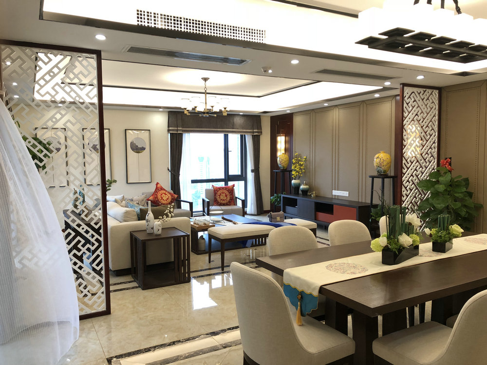 本案戶型方正,南北通透,采光充足,為了滿足業主更高規格的生活需求,對戶型做出如下調整:(1)打通客廳和陽臺,增加實際采光面積;(2)打造客餐廳、廚房一體化,形成通透開放格局,且用鞋柜充當空間隔斷;(3)主衛做了切面設計,形成鉆石結構,精簡空間。