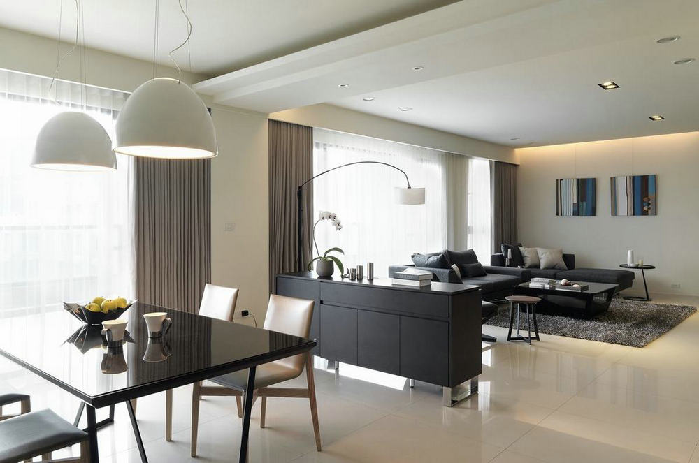 餐廚區域兩面均設置了聯動推拉門,黑色極窄邊框凸顯現代質感。整體可開闔可關閉,保證內外部的互動性,讓空間更加通透,從而營造大氣的餐廚區氛圍。