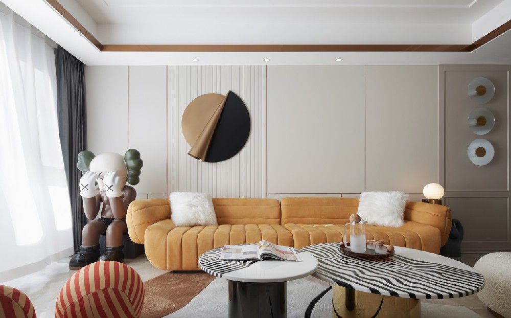 本案設計以“簡約精致、低調奢華”為核心,融合現代簡約的線條感與輕奢元素的品質感。通過原木及咖色調打底,局部點綴金屬、石材、玻璃等材質,營造通透、明亮且富有層次的空間氛圍,同時注重生活功能性與舒適性。