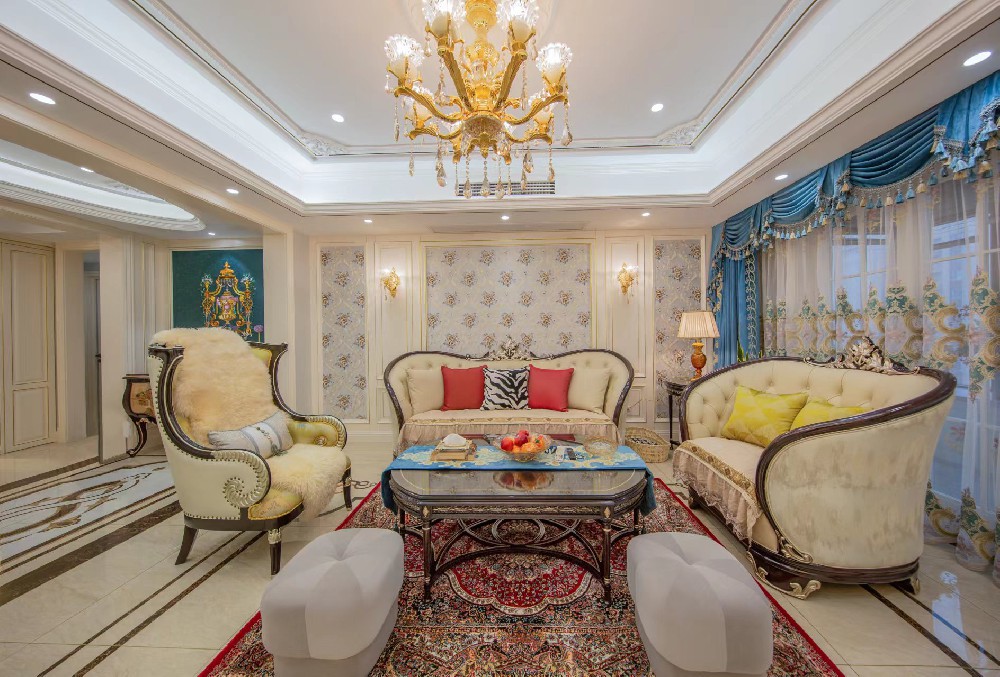 原戶型是220平的大房子,家居設計需要符合三代人的生活需求。風格方面則以新中式風為呈現,以低調平和的色調與新中式元素相融合,體現出溫婉秀雅的東方情懷。采用藝術涂料+護墻板+刺繡硬包等材質,使得新中式風格更加實用、更富現代感。