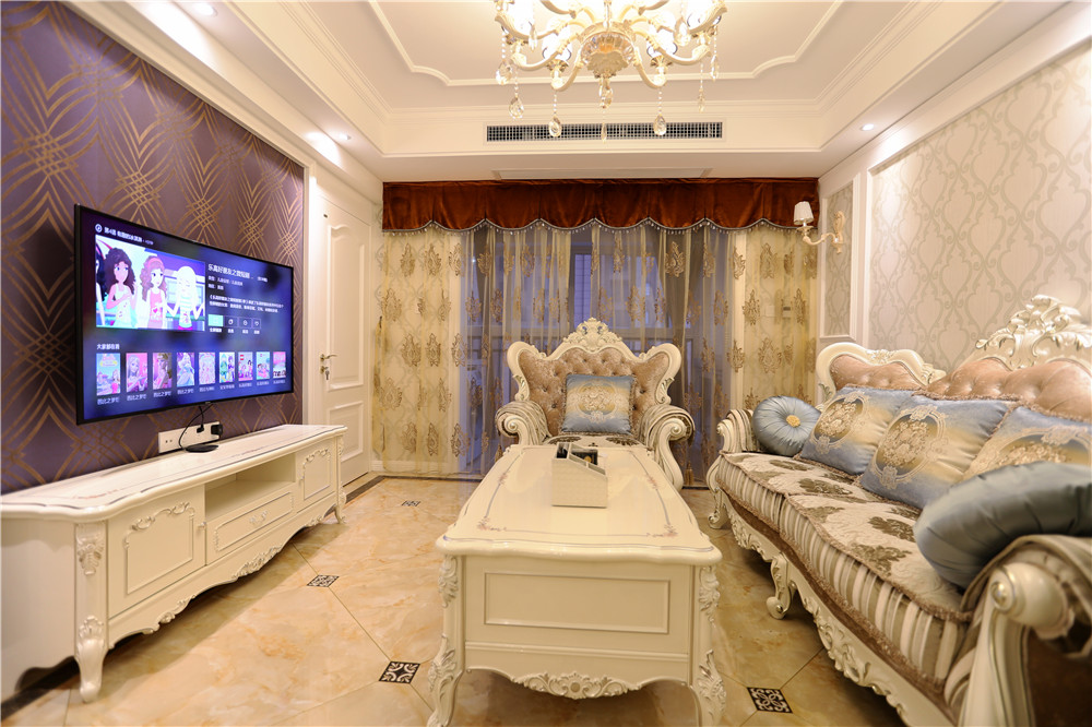 靠墻定制一整面餐邊柜兼玄關柜,同時與電視背景巧妙聯動起來。利用黑玻裝飾品分隔區域,起到裝飾美觀的效果。柜體采用白色門板搭配木色開放格,保持了整體空間的簡潔純凈。