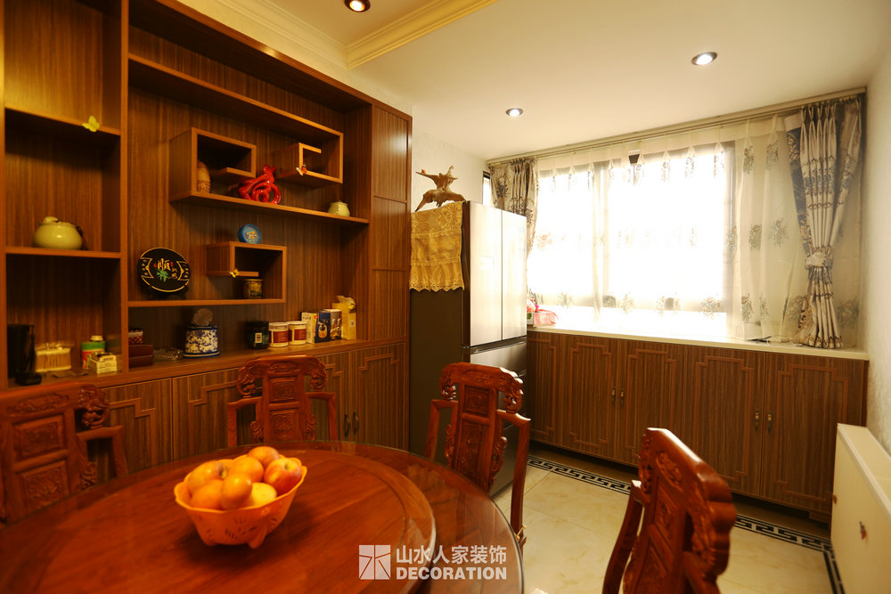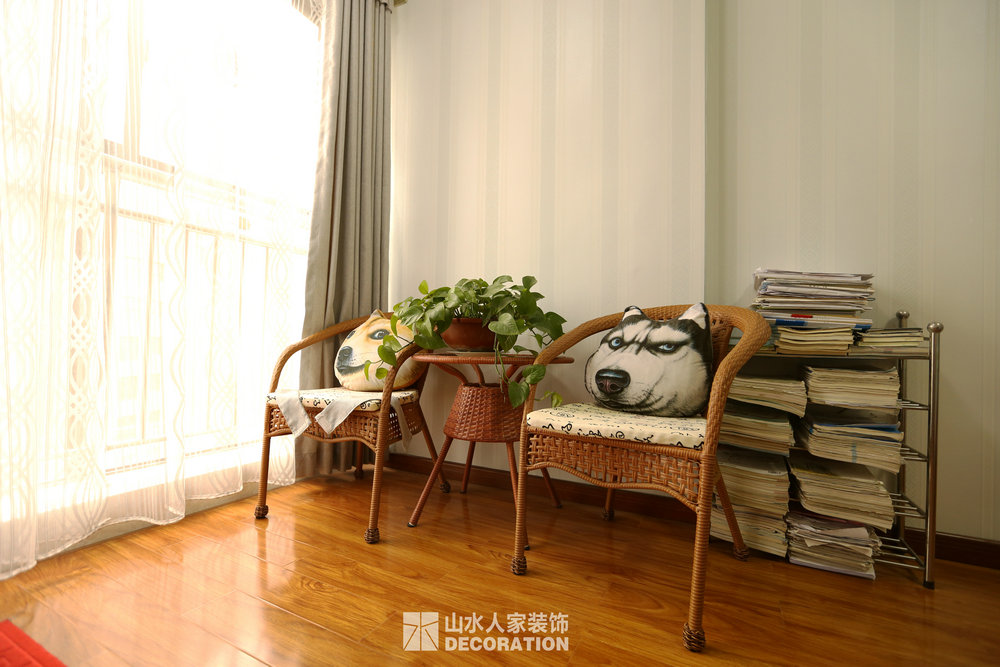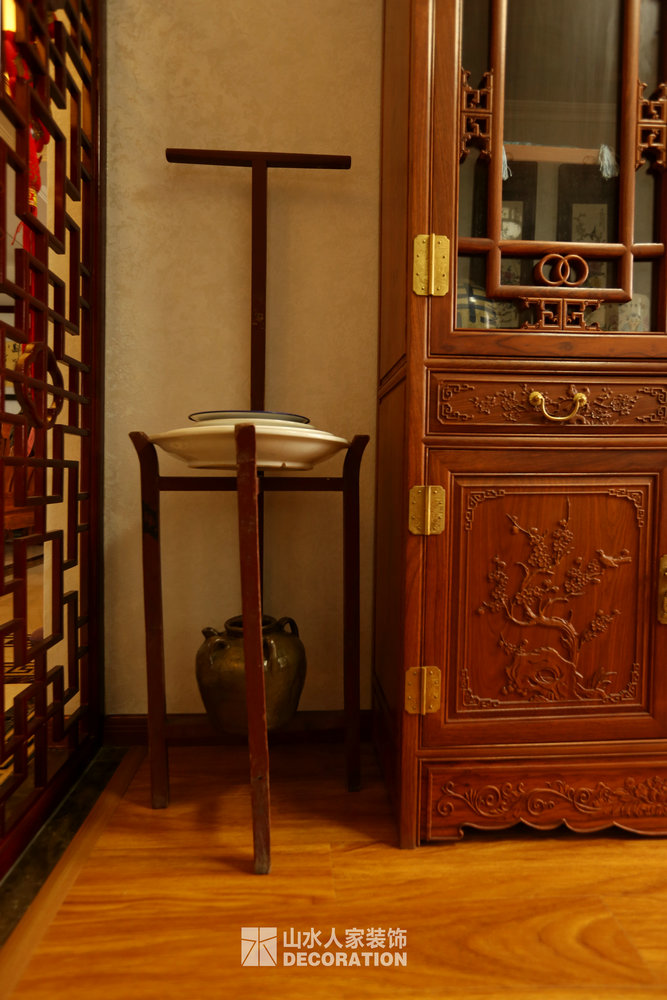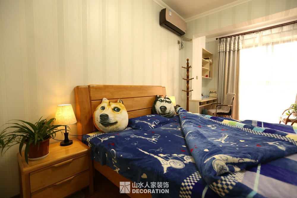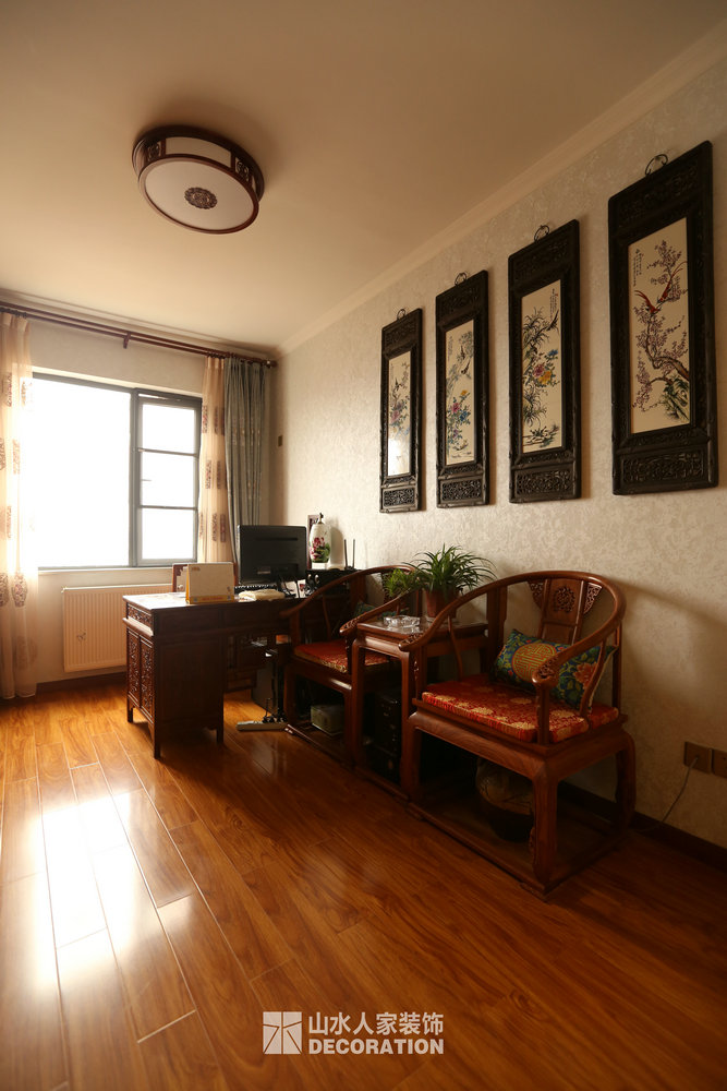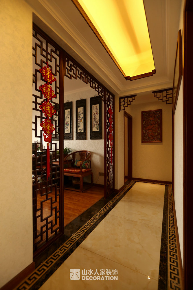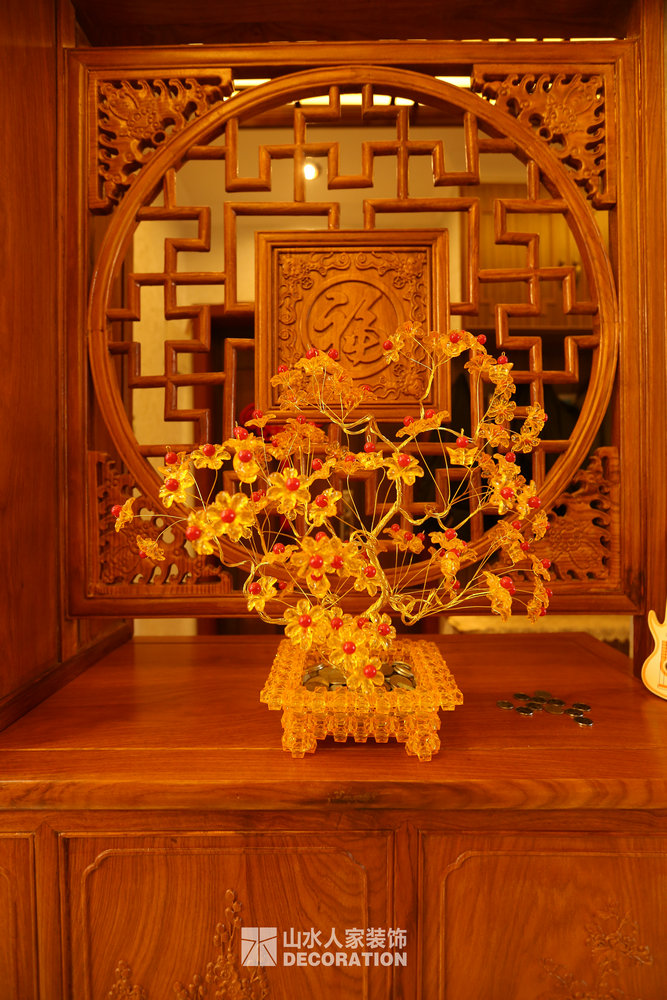 平面入戶是正對著一條狹長的過道,站在門口一眼把家里一望無余,所以在溝通的過程中在入戶的對面加上屏風隔斷的裝飾柜,既增添了儲物和美觀的功能,又做到了柳暗花明又一村的神秘感。書房在過道的一邊,狹長的過道兩邊分布了四個房間,考慮到采光跟視覺的開闊性,用雕花隔斷打造開放式書房,充分的讓空氣對流,合理的引進采光,視覺上拉大開放空間。小孩房把原始的陽臺包進來,整面落地玻璃在陽光最好的南邊,坐在窗邊看看書,喝喝茶,曬曬太陽簡直是美極了。原本開門對著過道的主臥洗手間,往主臥室平移了一扇門的空間,既保證了主臥衣柜的儲物量又避開了衛生間門對大門的弊端。整個柜子全是現場工人師傅采用公司最具環保的兔寶寶免漆板純手工制作,內斂不失細致,美觀卻不繁瑣
