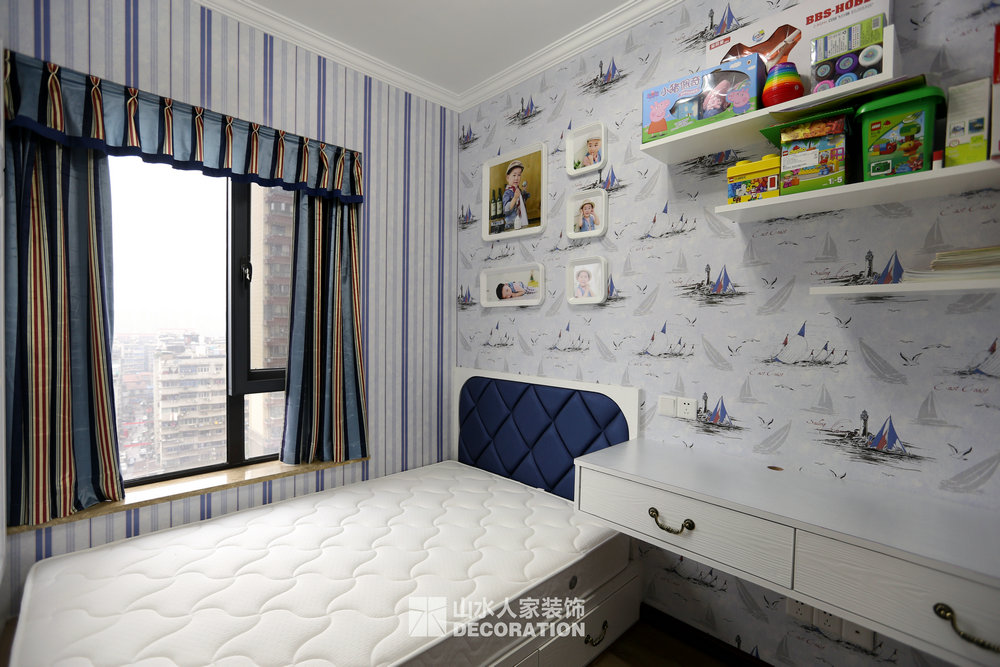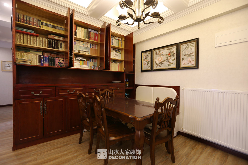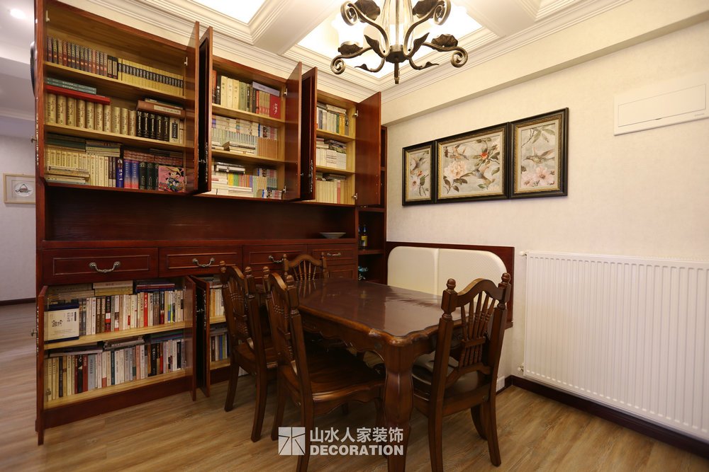 此套房為改善住房,家里一共五口人居住,男業主是公務員,女業主是位老師,加一個三歲的小男孩,外公外婆。由于職業原因吧,業主特別要求需要一整面大書柜。閑暇時最愛的就是坐在書房品一杯茶讀一本書。