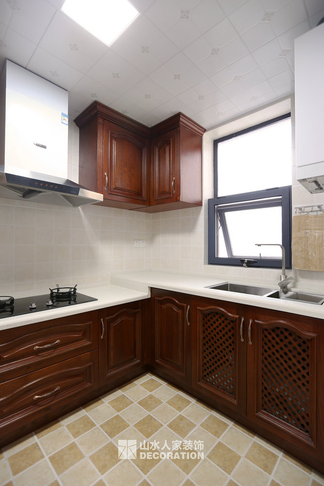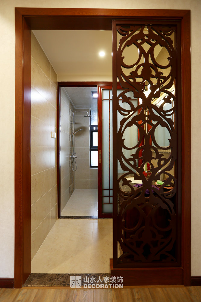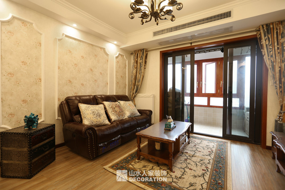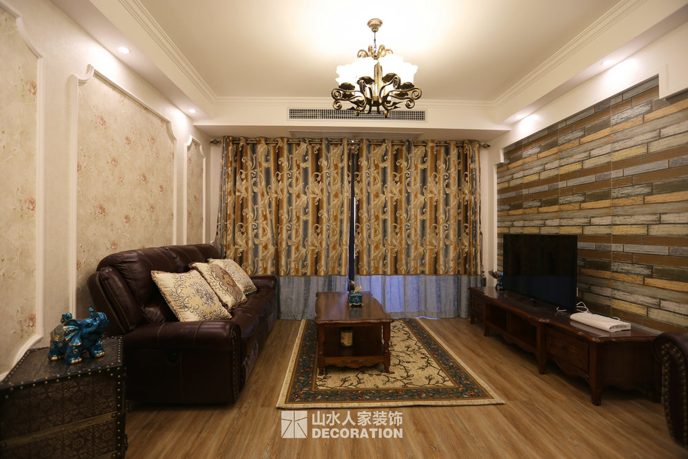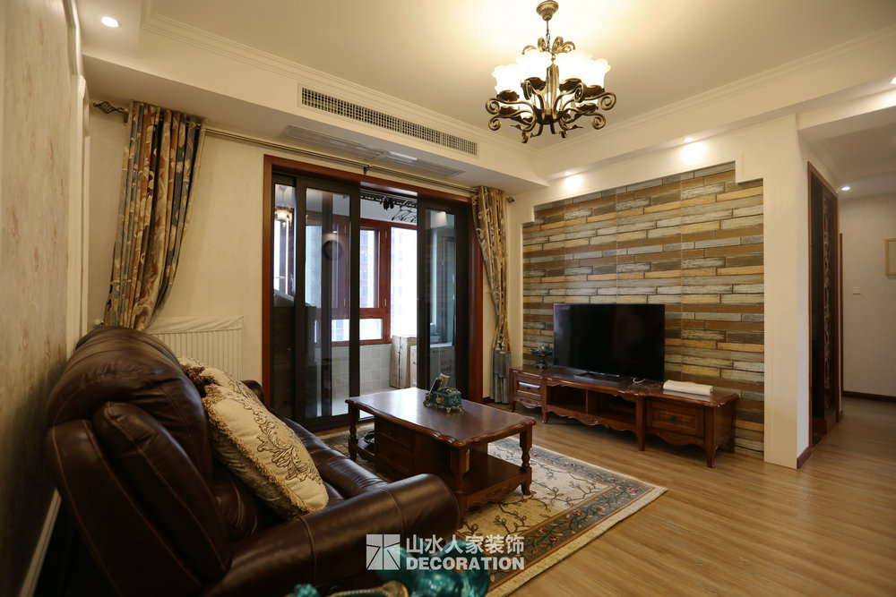 ③設計說明:此戶型是一個常規的三室兩廳雙衛雙陽臺的戶型,戶型方正,南北通透,采光通風都挺不錯。和業主溝時,女主人說希望有一個衣帽間,男主人則說需要大面的書柜和書房。于是在方案設計的時候,特地將主臥原本衛生間的地方劃分了一部分做成了衣帽間,然后將主臥的陽臺做成了一個半開放式的書房。其他的區間則遵循了原始的格局,只是在細節上做了很多優化,再一次見面溝通時方案得到了業主的一致認可。而風格上我們則選定了具有明晰線條、優雅得體有度的古典美式,恰如業主第一次給我的感覺一樣。