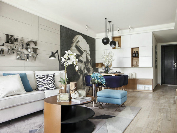 華潤翡翠城極簡風格三室兩廳裝修效果圖