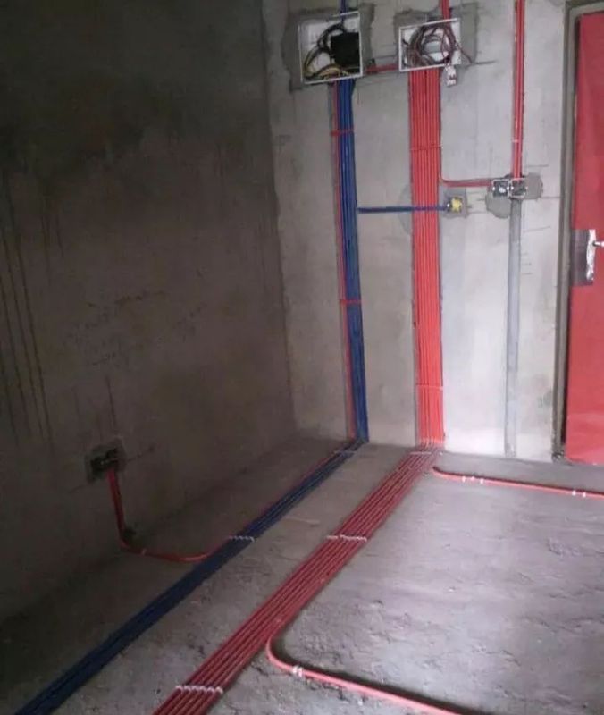 一般冷熱水管材料是用PPR塑料管,除了不能交疊、緊靠,還要考慮拉長水管時水壓不夠的問題。長水管主干要粗,分支要細,驗收的時候一定要測水壓。