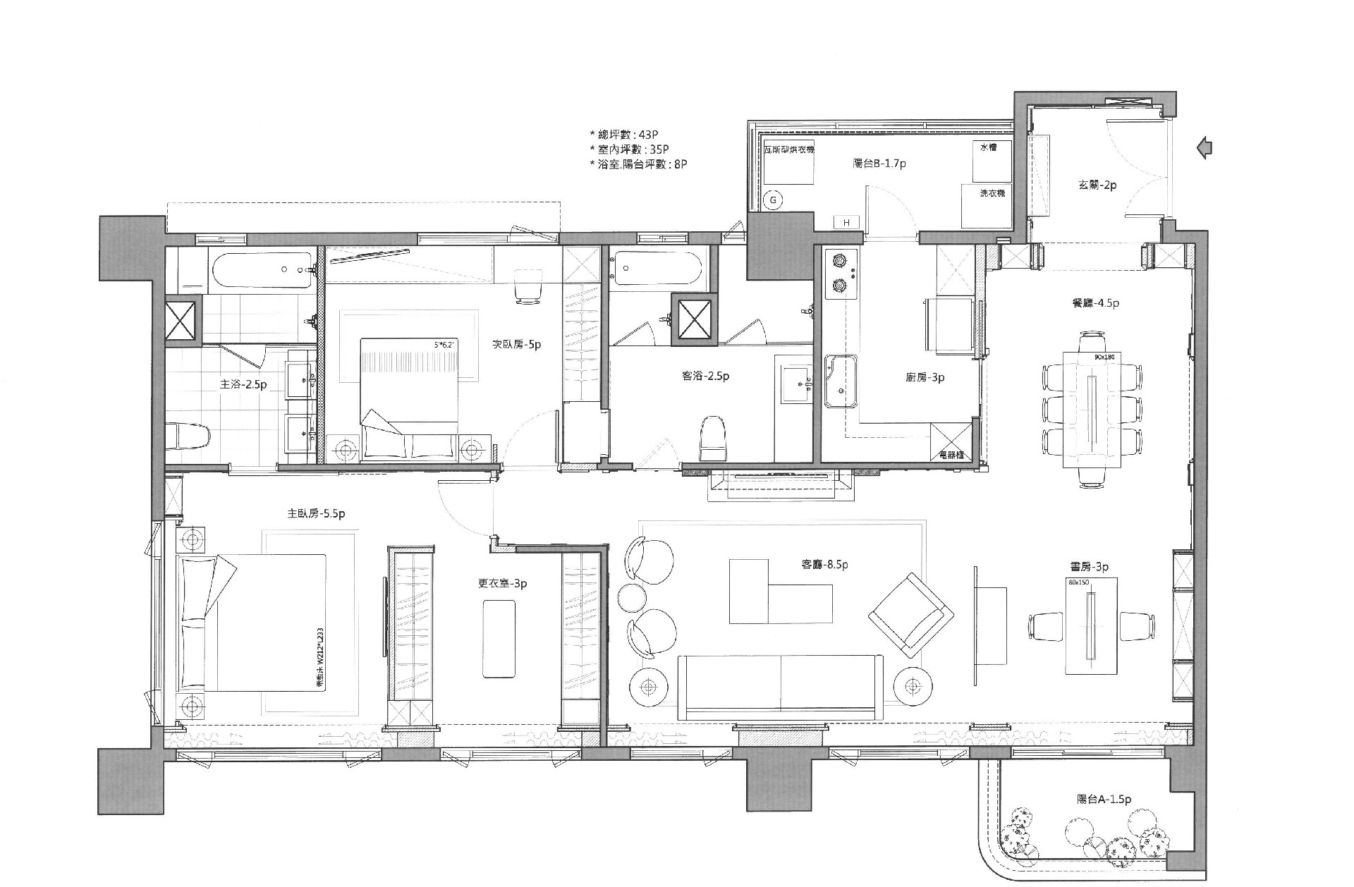 ●客廳面積:40㎡